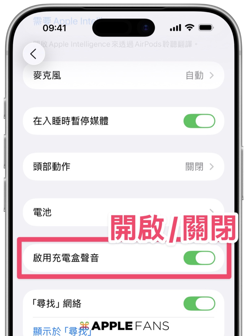 - 開關路徑:在 iPhone/iPad 前往「設定」> 選擇 你的 AirPods > 將「啟用充電盒聲音」開啟/關閉。