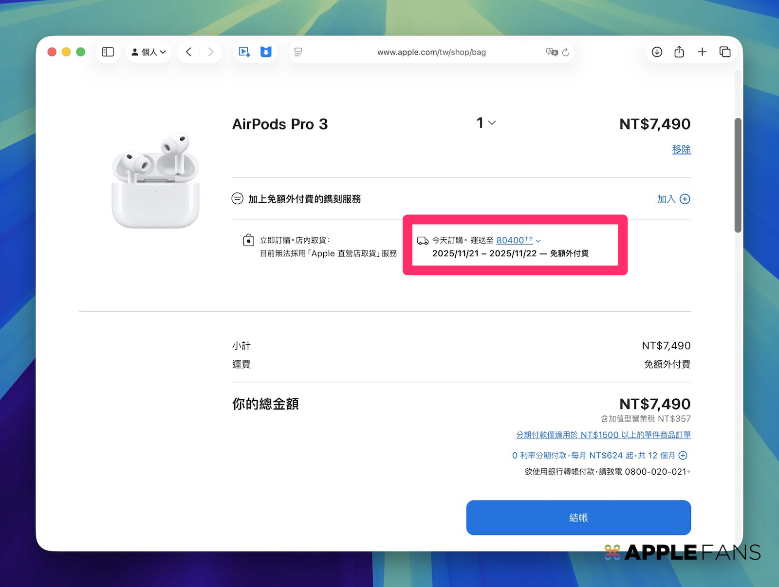 現在只要前往蘋果官網下單,最快就可以在 11 月 21 日拿到全新的 AirPods Pro 3 耳機。
