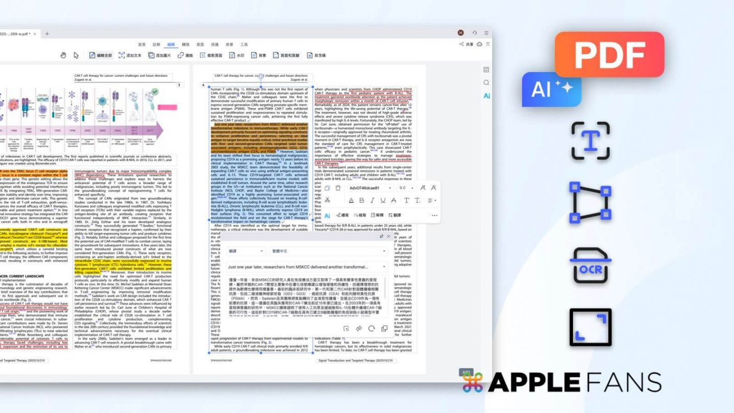 功能完整且專業: 從基本瀏覽、標註、加圖文,到進階的精準格式轉換、專業 OCR 文字識別,一應俱全。