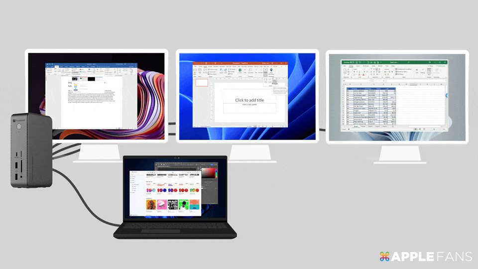 而在 Mac 上透過 TD2 最多可外接兩台螢幕。你可以直接用 Thunderbolt 接兩台螢幕、或者也可以把其中一台螢幕插在 HDMI 孔,外接的這兩台螢幕,更新率最高都支援到 6K@60Hz,看劇、文書處理完全沒問題,而且都是延伸桌面,大大提升你的工作桌面。