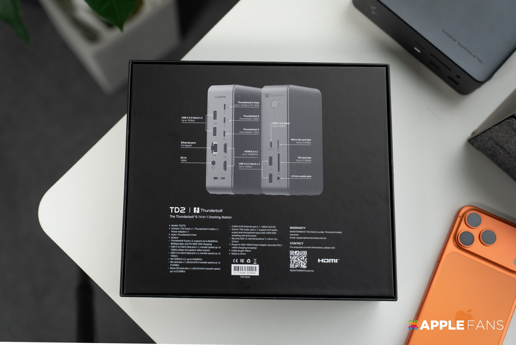 這次我們收到台灣品牌 MONITORMATE 最新的 TD2 擴充座,這是一款 14 合 1 的 Thunderbolt 5 Dock。主要是設計給需要高傳輸頻寬、會外接很多裝置,或是需要使用多螢幕的人。這也是 MONITORMATE 第一款支援 Thunderbolt 5 規格的產品,最高傳輸速度可以達到 120Gb/s。
