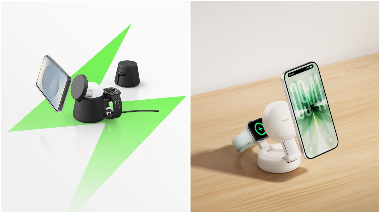 Belkin 推出 UltraCharge 模組充電座,主打跨系統支援,是市面上少數同時支援 Apple Watch 與主流 Android Watch 裝置的三合一充電方案,可同時為手機、耳機與智慧型手錶提供快速充電。相較多數僅以 Apple 為主設計的多合一充電器,增加使用彈性也為跨平台商務用戶提升便利。此外,UltraCharge Pro 二合一折疊磁吸充電器則專為 Apple 使用者打造,可同時為 iPhone 與 Apple Watch 充電,並具備可伸縮高度與多型態變化設計,無論於飯店、機場或咖啡廳等場景,皆能靈活調整使用方式並維持穩定高效的充電體驗。