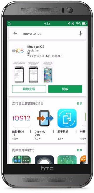 打開 Android 手機,進入「Google Play 商店」搜尋“Move to iOS”並下載。