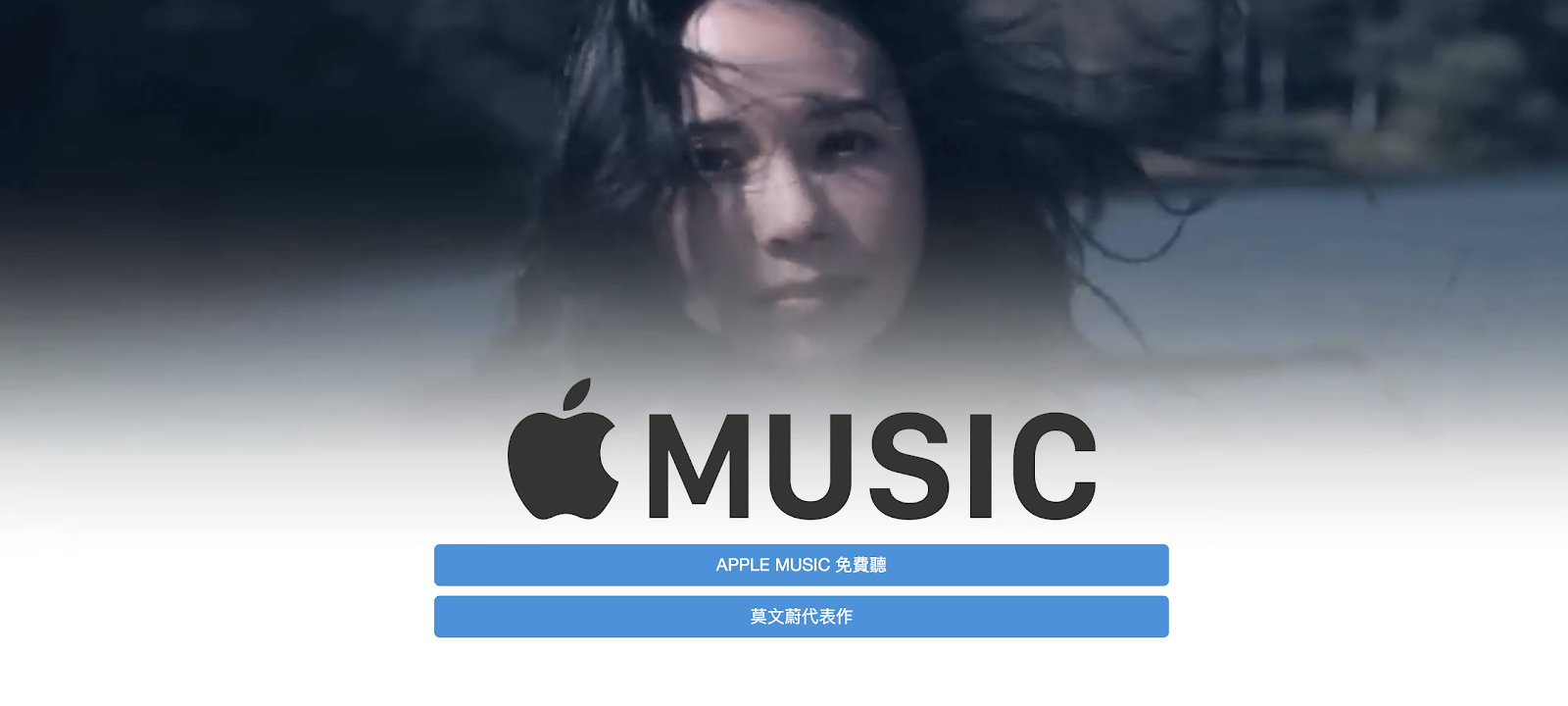 首先,來到活動宣傳頁面。可以看到大大的寫著 Music 字樣,底下有 【Apple Muisc 免費聽】以及【莫文蔚代表作】兩個按鈕。
