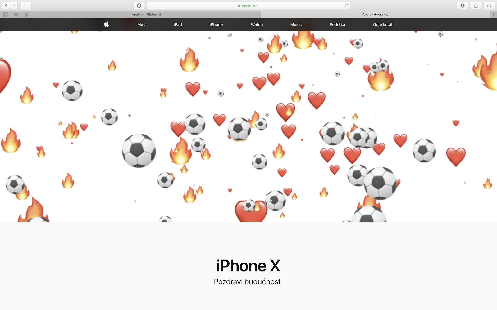 而蘋果這次也沒閒著,蘋果在今天將法國以及克羅埃西亞兩個國家的蘋果官網分別做了一點小小的特效,提醒每個前往官網的朋友不要忘了關注這場盛事。