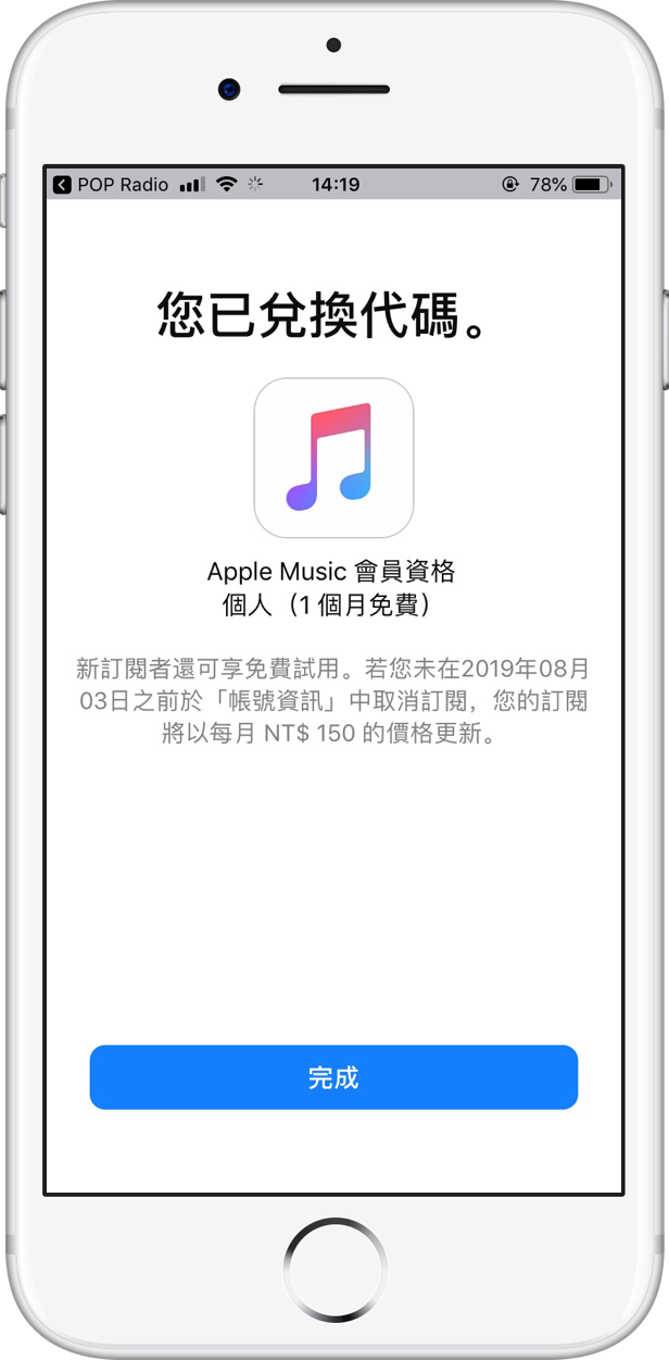 如果先前未試用過 Apple Music,兌換後更可享有 3+1 的四個月免費試聽。而舊客戶就如字面上所說的,有一個月的免費會員資格,但僅限沒有訂閱的會員,已訂閱的個人會員、家庭會員、學生會員皆不可使用。