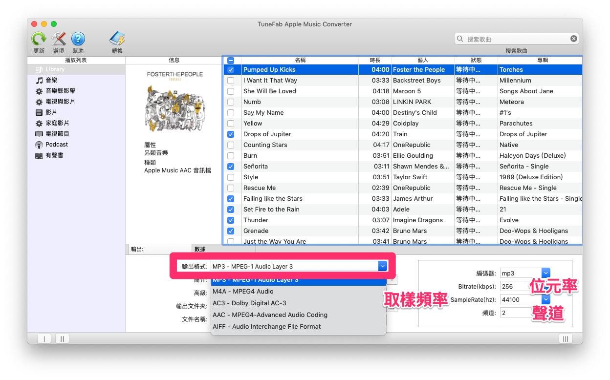 如果想要擁有原始的 Apple Music 音樂品質,建議將位元率設定為 256 Kbps、取樣頻率為 41,000赫茲。