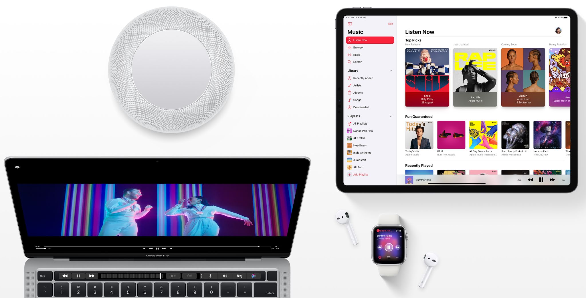Apple 使用一種算法,分析了 Apple Music 目錄中 7000 萬首曲目的歌詞,這些歌曲重複具有挑戰性的聲音,使聽眾可以作為一種語音療法來唱歌。該項目使用算法來識別歌曲,這些歌曲會重複出現語音障礙者難以發音的聲音。播放列表就集中在聲音 “CH”、”D”、”F”、”G”、”K”、”L”、”R”、”S”、”Z” 和 “T” 上。