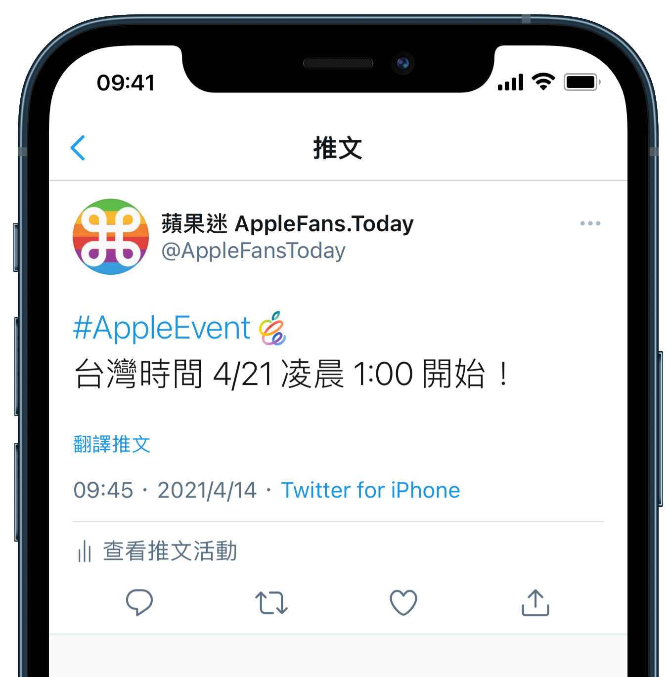 活動將於美國時間 4 月 20 日上午10點(台灣時間 4月 21 日 凌晨 1 點)開始,APPLEFANS蘋果迷 會在台灣時間 4 月 21 日凌晨 12點,在 YouTube 上直播陪伴大家一起看發表會。