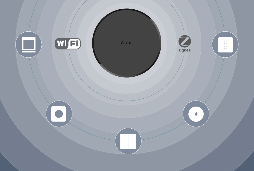 這款 Aqara M2 Hub 智能網關,不僅支援 HomeKit,也支持 Zigbee 3.0、Wi- Fi 雙天線(採用 2 X 2 MIMO無線技術)、紅外線等智慧家居協議。並設備背面還附有 RJ45 乙太網路接口,讓數據傳輸上更為穩定。
