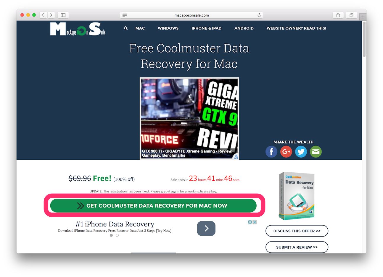 2. 點選 >>GET COOLMUSTER DATA RECOVERY FOR MAC NOW