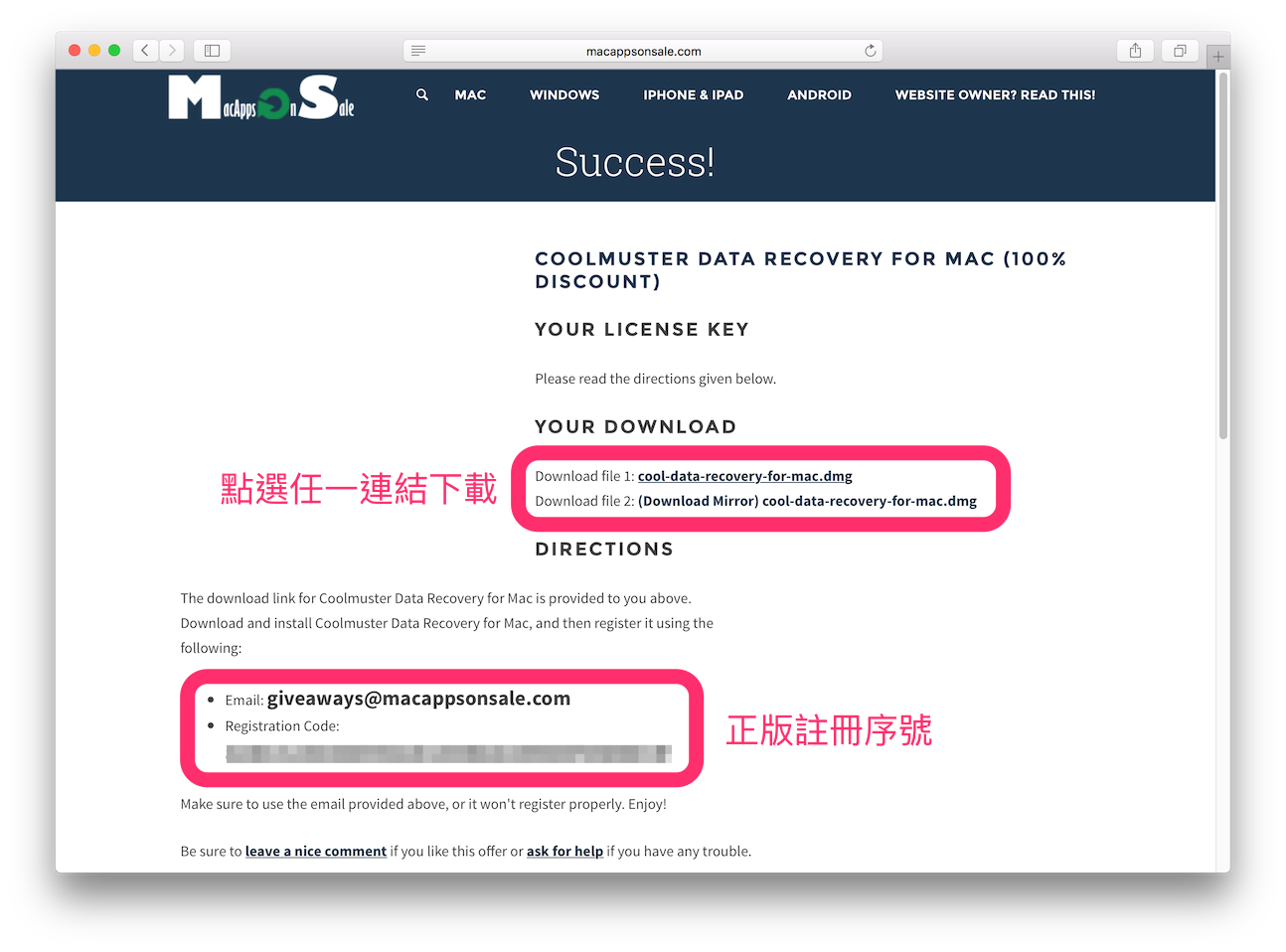 3. 輸入 Email 及勾選您擁有的裝置後按 >>GIVE IT TO ME NOW,即可收到註冊序號