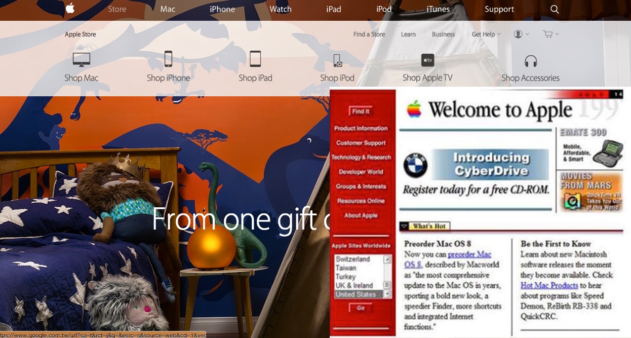 眼看著 2014 就要結束了,當你揮別 2014 ,邁向 2015 的時候,你可曾想過, 這二十年來, Apple 的網頁改變了多少嗎?今天就帶大家回到 1994年來看看!