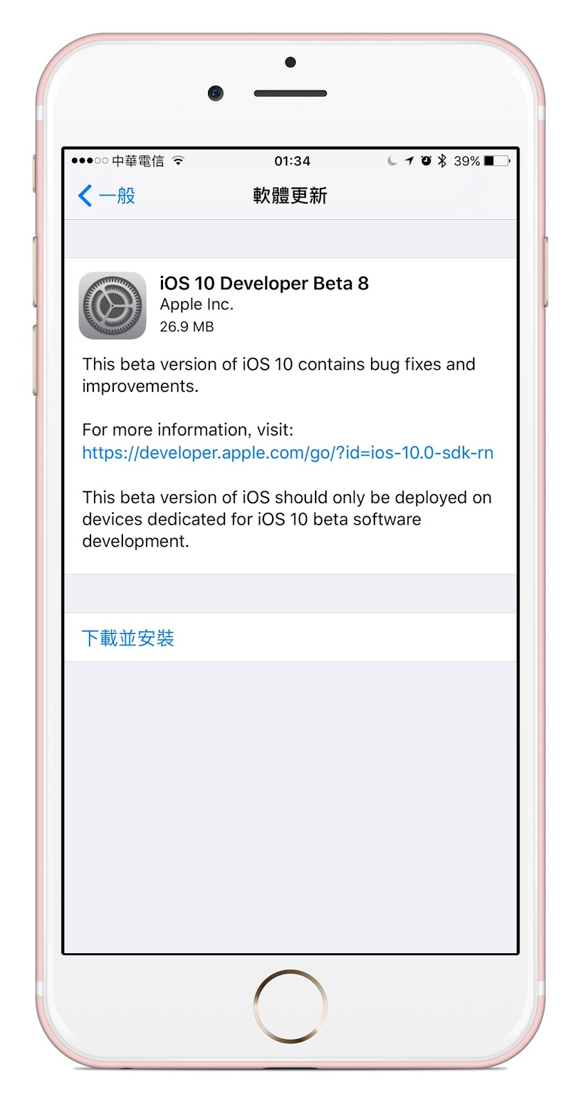 如果你的裝置已正在測試 iOS 10,可以立即透過 OTA 下載 Developer Beta 8 & Public Beta 7 的更新。