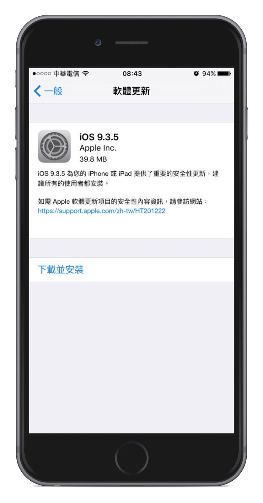 這次 iOS 9.3.5 更新的大小只有 39.8MB,建議所以運行 iOS 9 的設備馬上進行升級,讓自己的 iPhone 和 iPad 獲得更安全的系統環境。