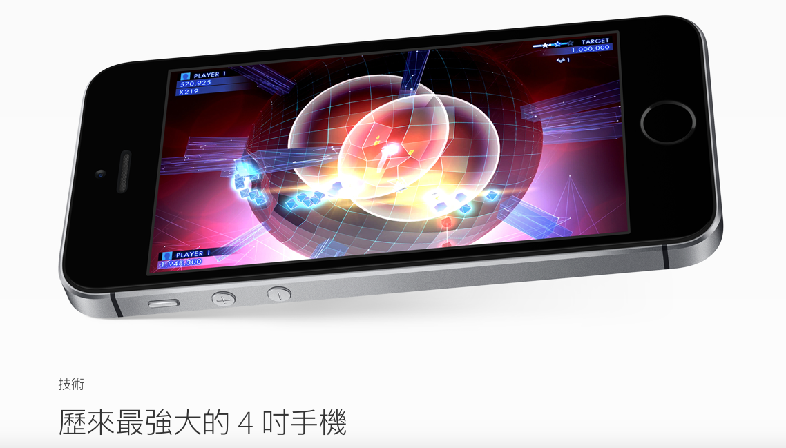 - iPhone SE 螢幕為 4 吋 ,採用與6S 相同的 64位元 A9 CPU,外觀與 iPhone 5S 相同,但是多了玫瑰金。