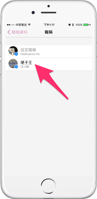就會看到該人的聯絡資訊,這時候點擊一下暱稱。