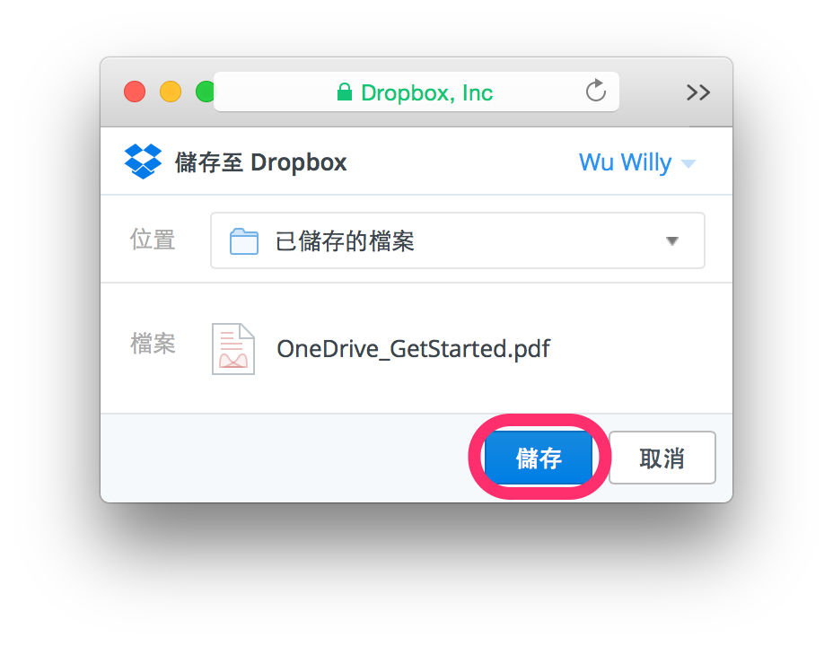 4. 會自動連結至 Dropbox 帳號,請直接按【儲存】