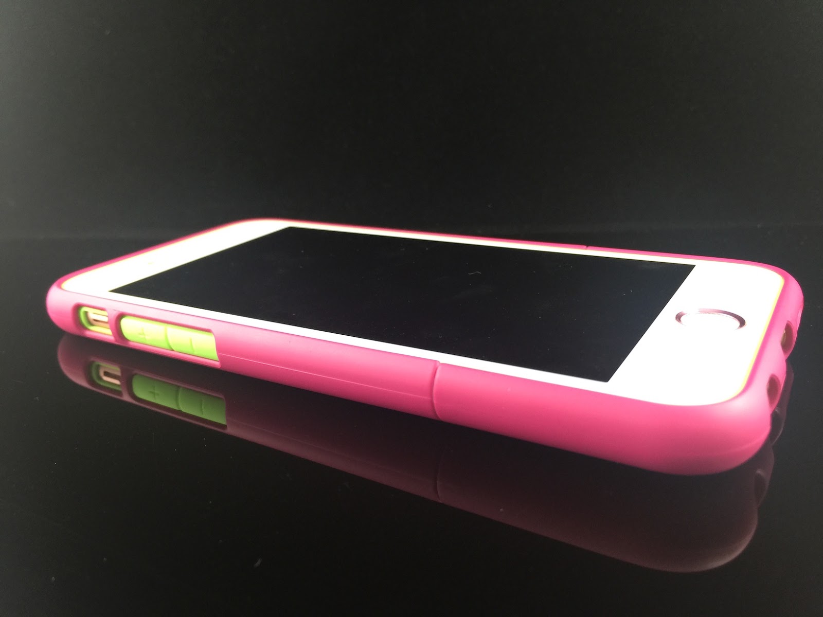 看一下背面的感覺,鮮緣色的內襯配上桃紅色的外殼,再加上玫瑰金的機身,是不是挺好看?
