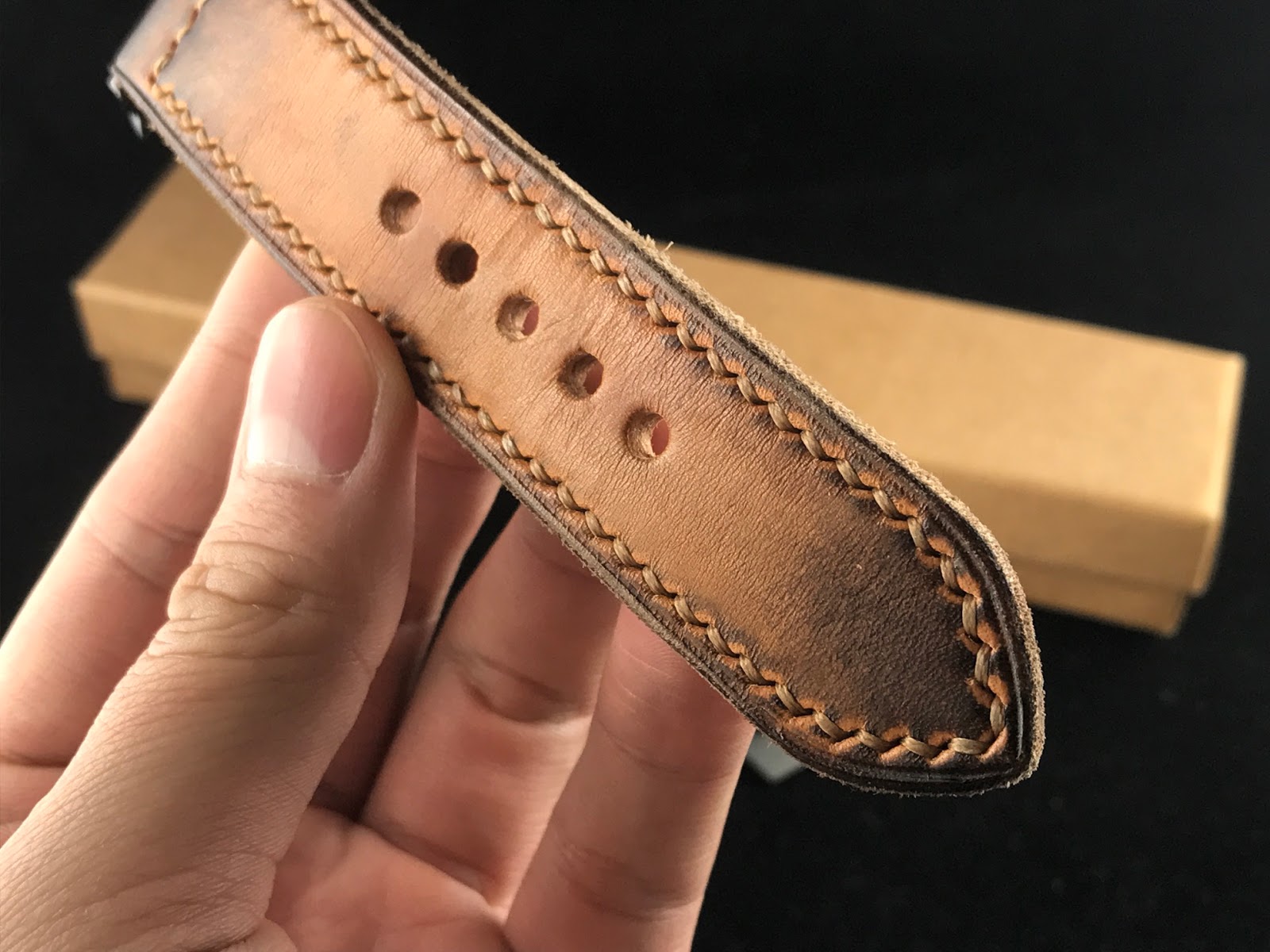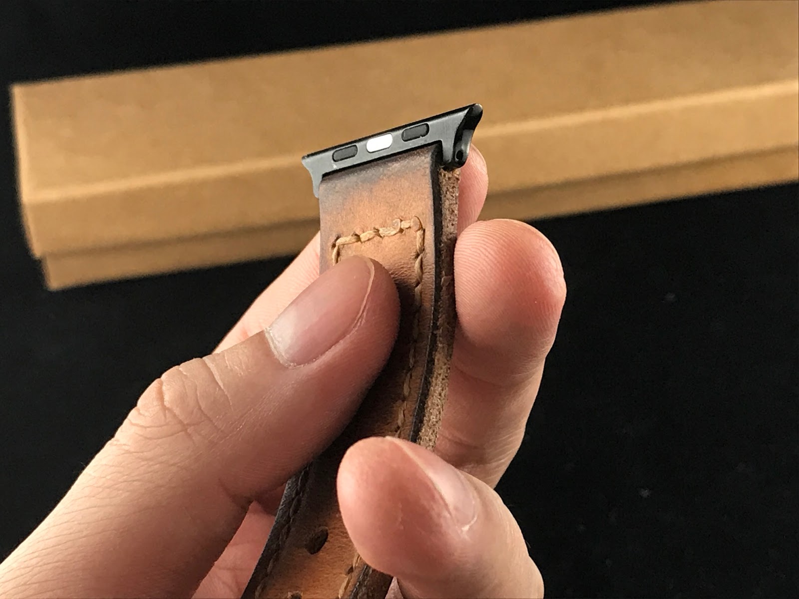 新拿到的時候真皮會相當的硬,第一次扣需要用力點去凹一下錶帶才扣的上,不過不用擔心,真皮的錶帶就是會越戴越軟、越戴越舒服、越戴顏色越美。