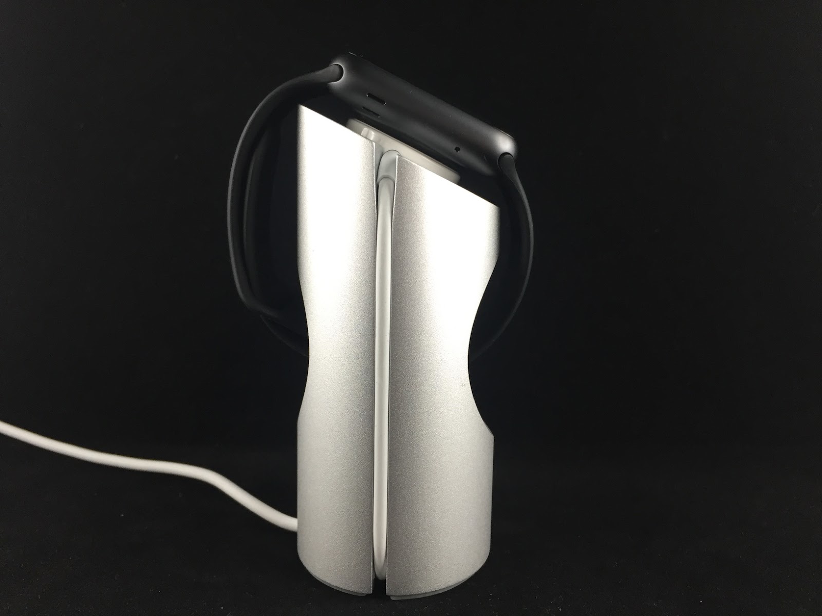 ▼ 從左側來看看,充電器稍微凸出 TimeStand 原來是為了讓 Apple Watch 吸附上去之後,錶帶仍能呈現很漂亮的曲線