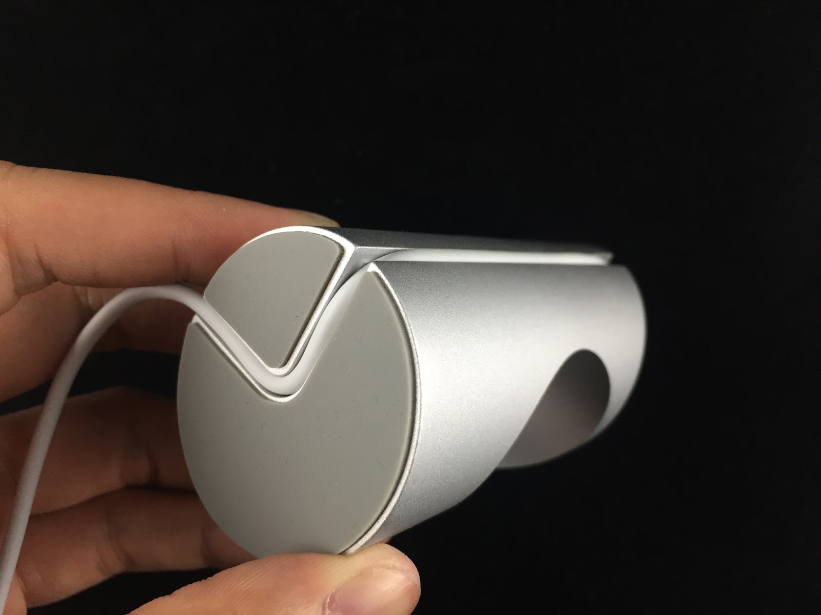 ▼ 隨藏式的佈線乾淨俐落,白色的充電器配上霧銀的日蝕造型鋁合金底座,整個超有質感的啦!
