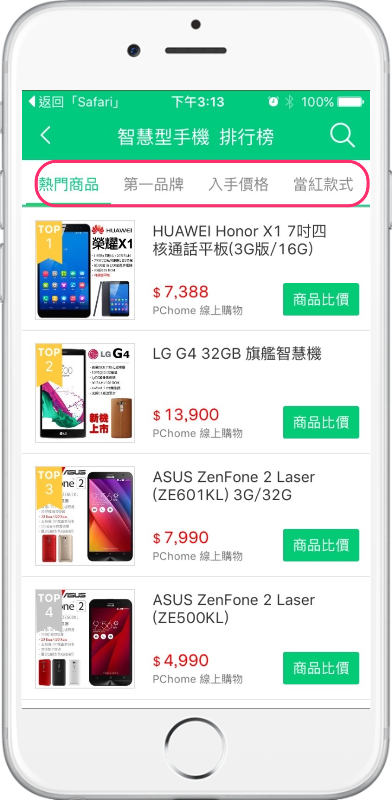 就會鎖定在更準確的同類產品比較(從 iPhone 的必較變成 iPhone6S 16G 的比較),這樣比較才會有意義。