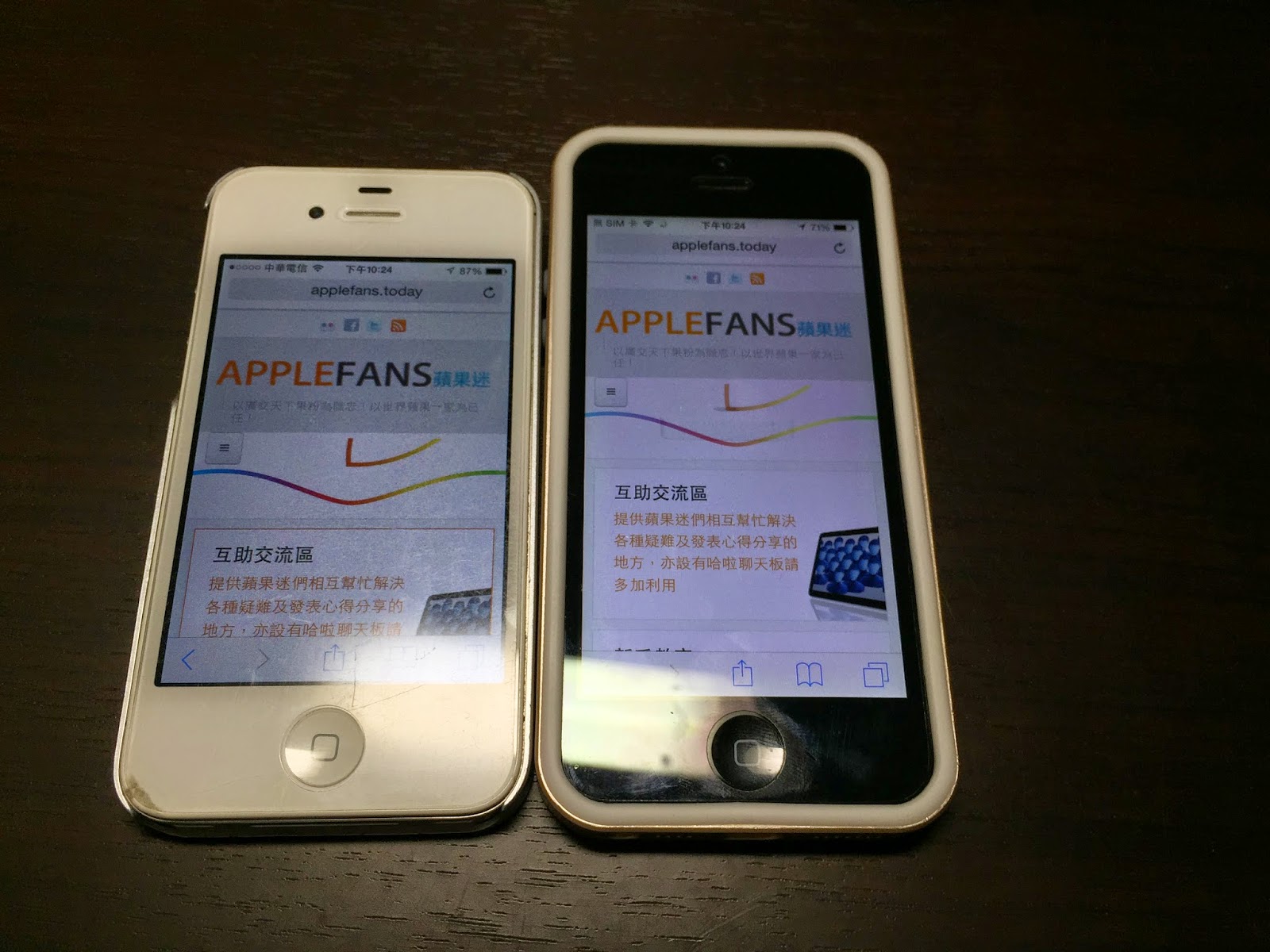 亮霧面比較(iPhone 4S為霧面保護貼,iPhone 5為亮面保護貼)