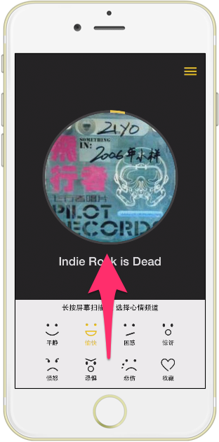 但是如果你不想要讓它辨識你的心情,你也可以一隻手指頭從下往上滑動,就可以看到所有的心情讓你選擇囉!