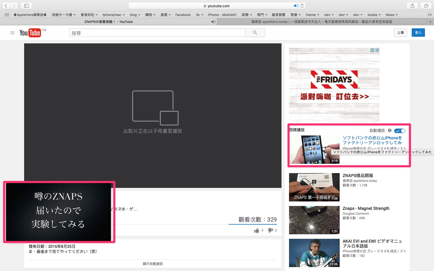 當我們用另開分頁的方式,來點擊第二段不同的影片,並且開啟子母畫面。