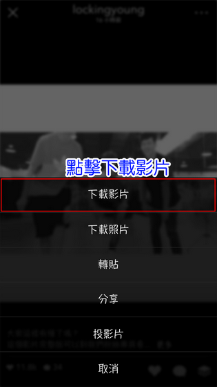 點擊「下載影片」