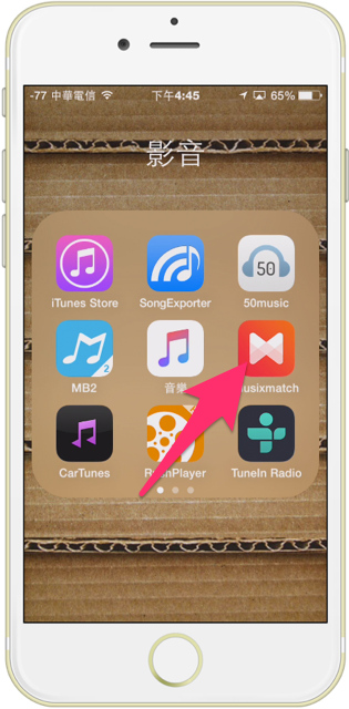 下載完畢之後,就可以離開 App Store ,回到主畫面找到 Musixmatch (圖示是長這樣),然後點擊它一下。