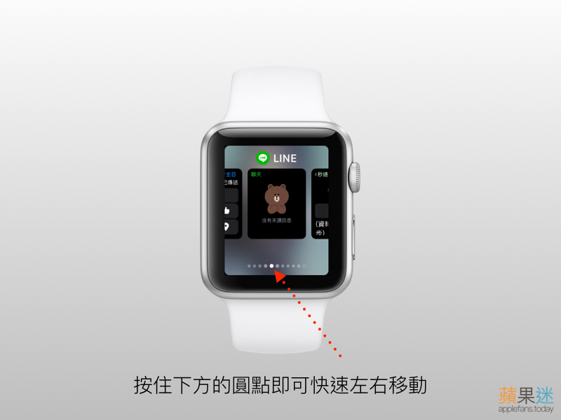 按住畫面下方的圓點,就能快速左右滑動 App 頁面。