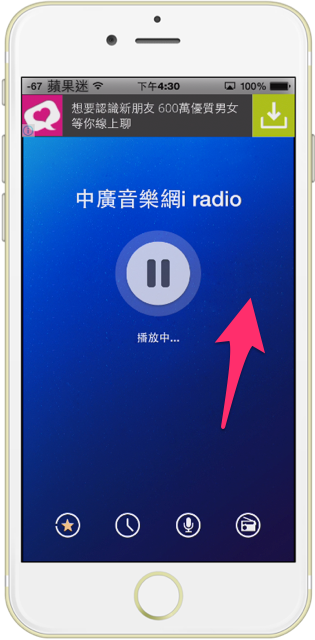好,你以為聽廣播啦只有這樣嗎?我們往右滑完之後,接著試試看往左滑動~~