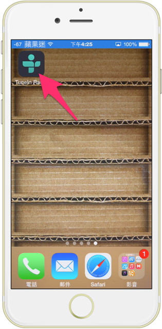 下載完畢之後,就可以按下 Home 跳回主畫面,找到聽廣播啦的圖示,並且點擊它一下!