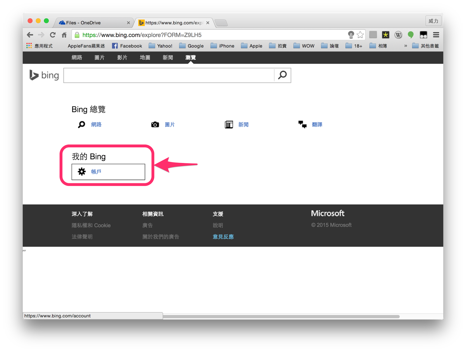 4. 進入 Bing 的帳戶設定:點此進入 Bing