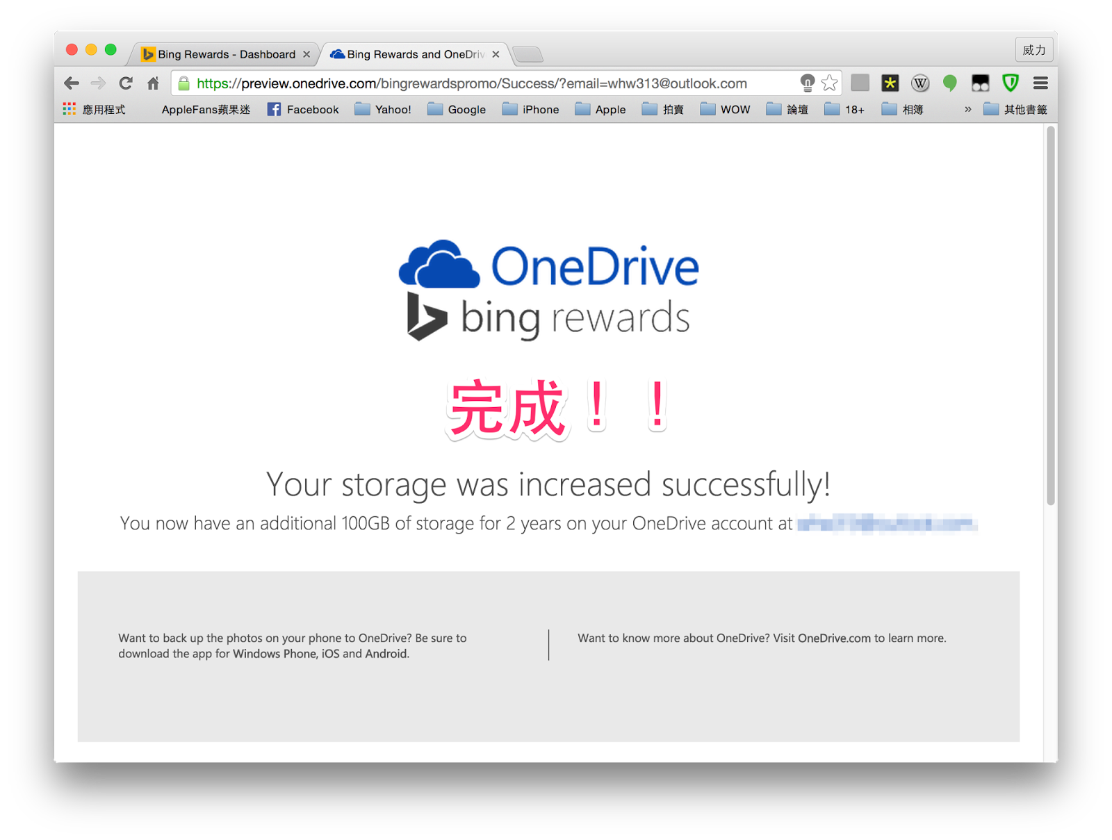 剛看到 PTT WindowsPhone 版上有人分享如何取得 OneDrive 免費 100 GB 容量的方法,忍不住也想分享給蘋果迷的夥伴們。