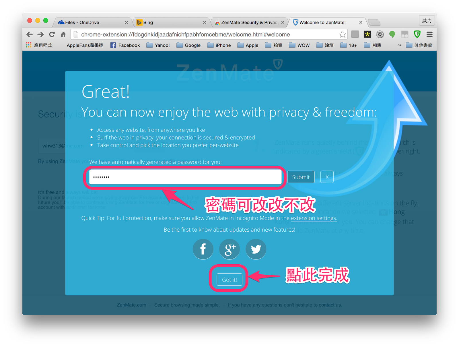 8. 點擊 Chrome 右上角剛安裝完的 ZenMate 插件