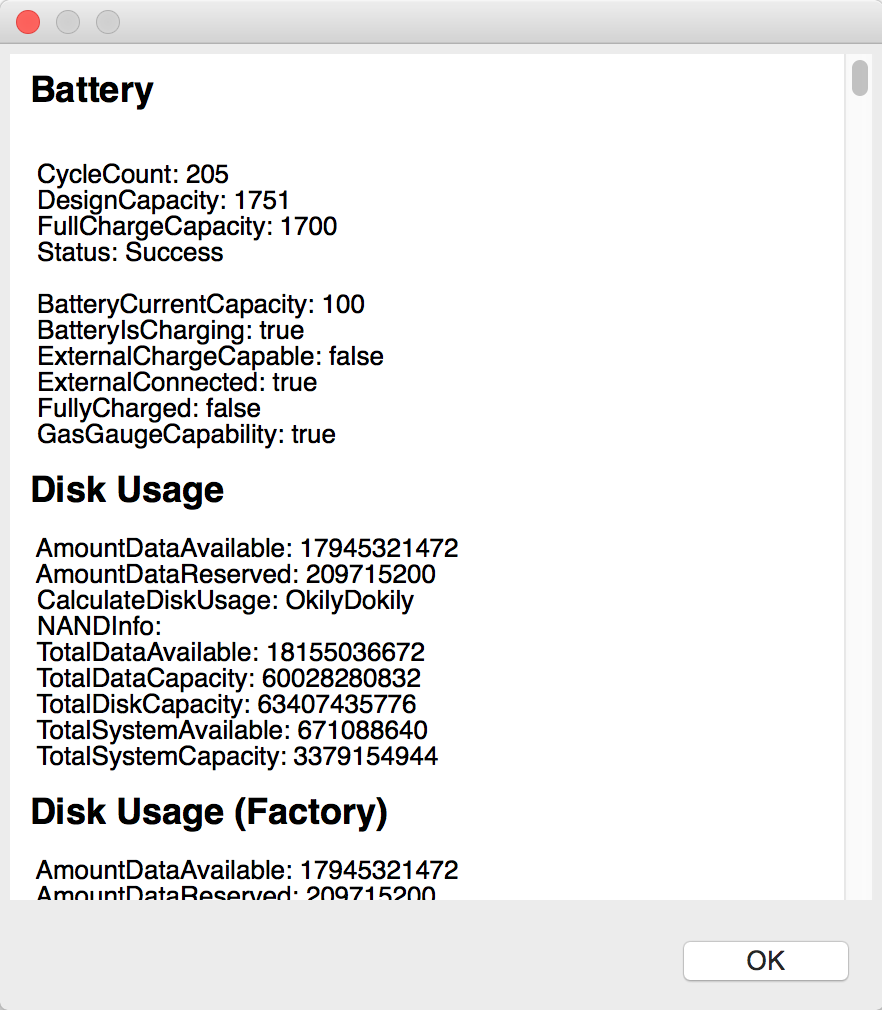 威力用 iBackupBot 查出來的目前電池容量是 1700,跟 iPhone 內建的用量診斷出來的數字是一樣的,所以不用擔心有不準確的問題。
