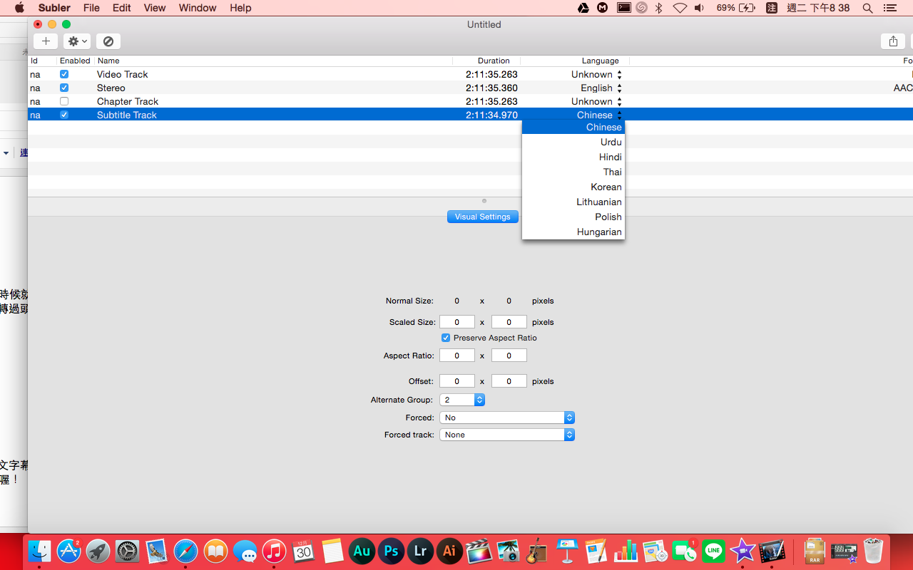 這時候最關鍵的來啦!就是加入字幕檔。記得喔!中文字幕一定要是 Big 5 編碼的 .srt 檔,否則的話即使在 VLC 能看,到 iTunes 裡依然會變成亂碼喔!(一樣的,我們不會提供你字幕的下載方式。)