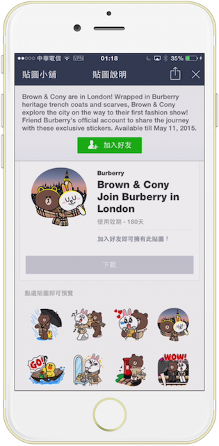 p.s. 此款 Burberry 的貼圖如果找不到的人請點此 傳送門 下載,記得一樣要 VPN 跳去日本唷!