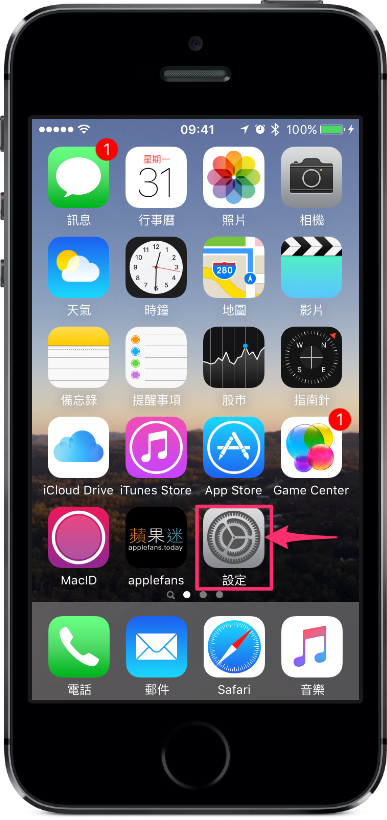 1. 點選主畫面的「設定」圖示。