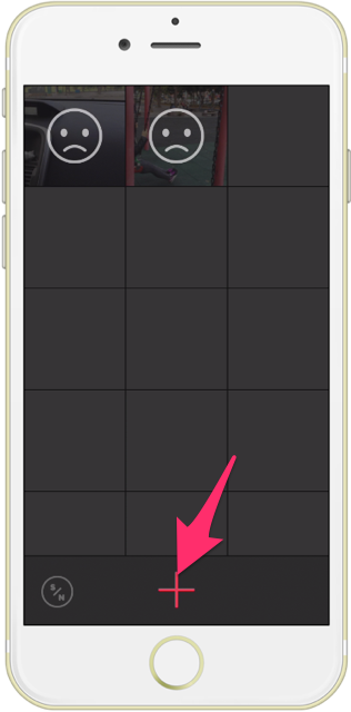 一開始進去,會要你選擇你手機中的影片檔案,請點選下方的 + 一下。