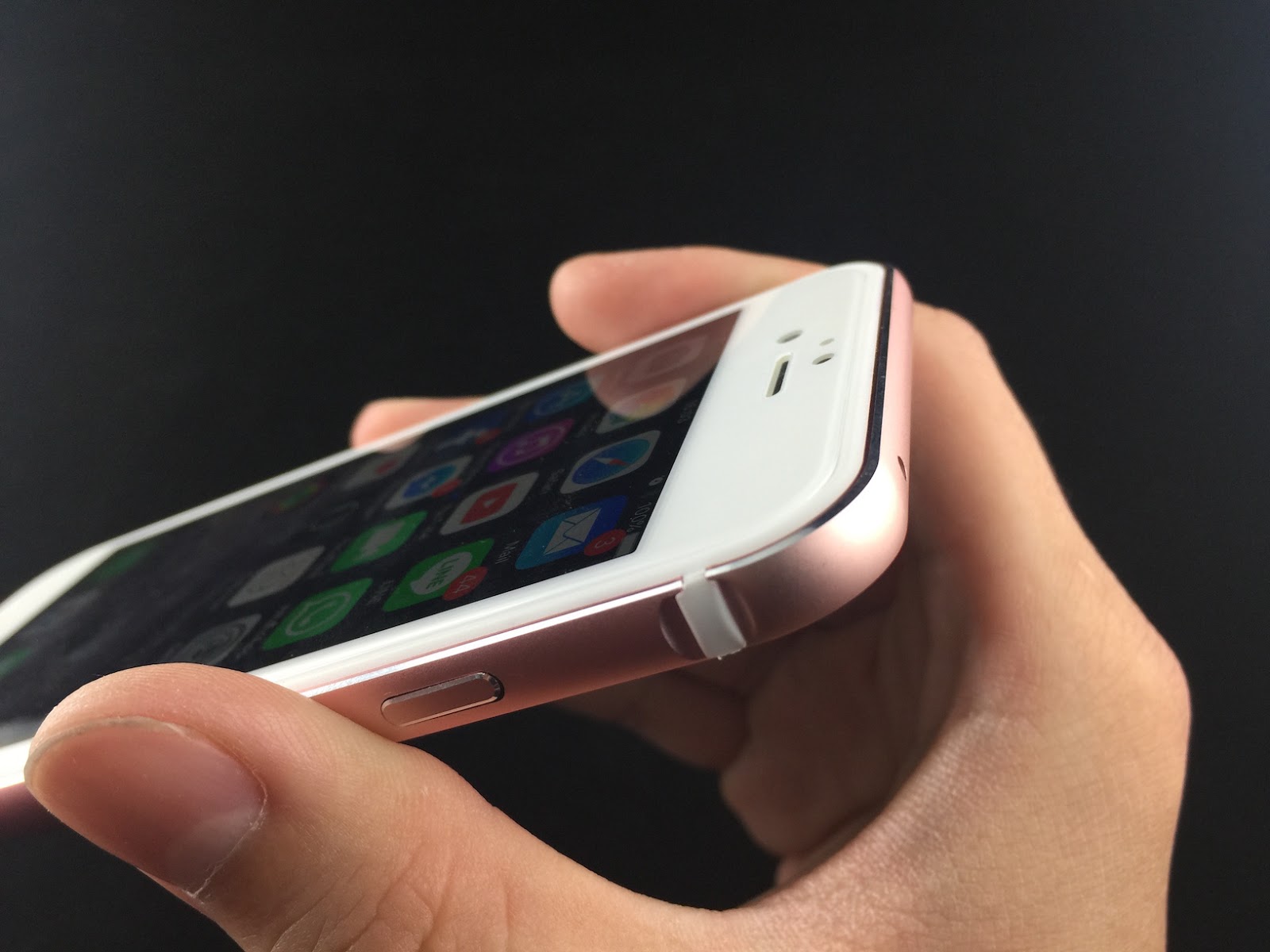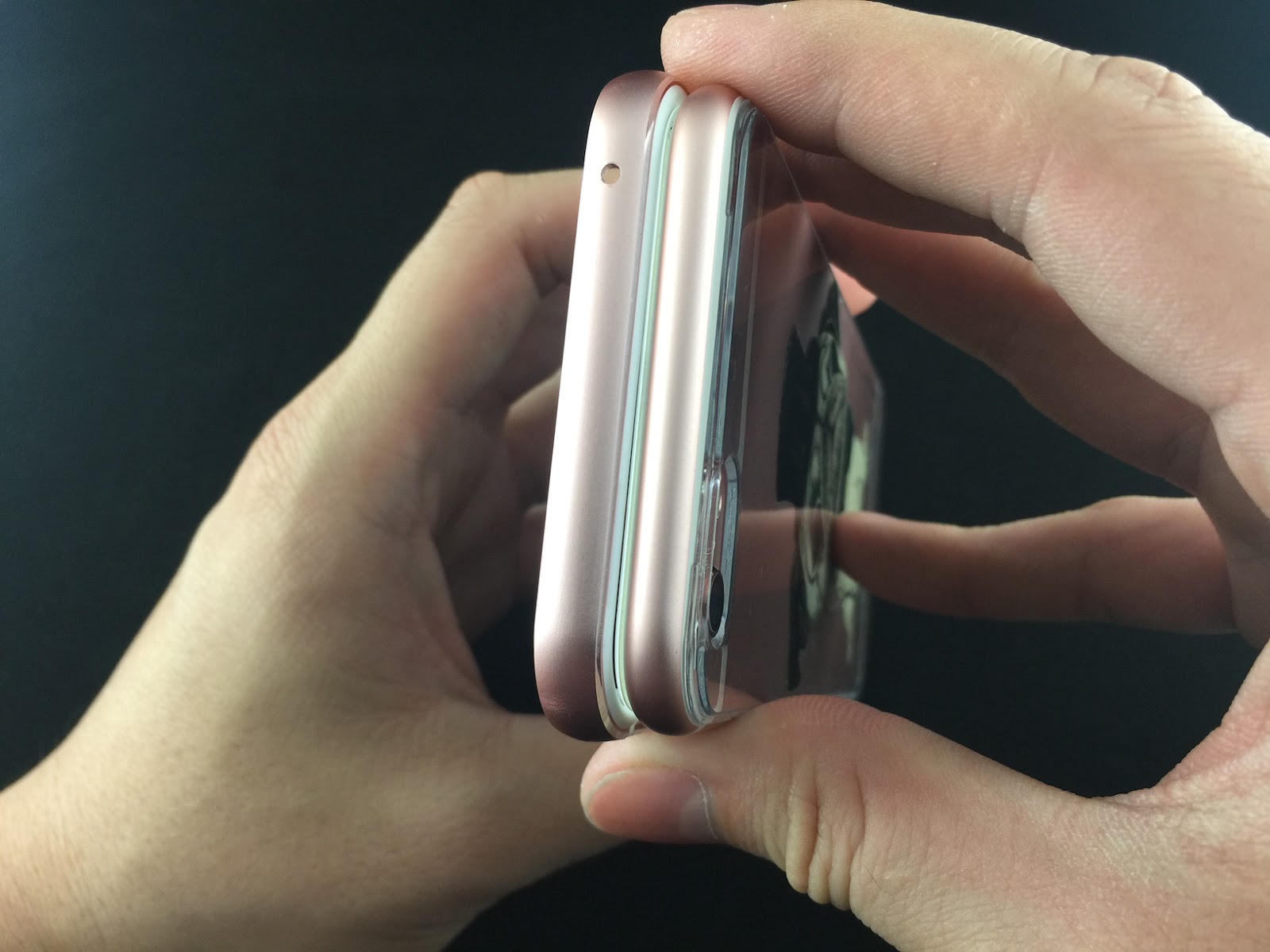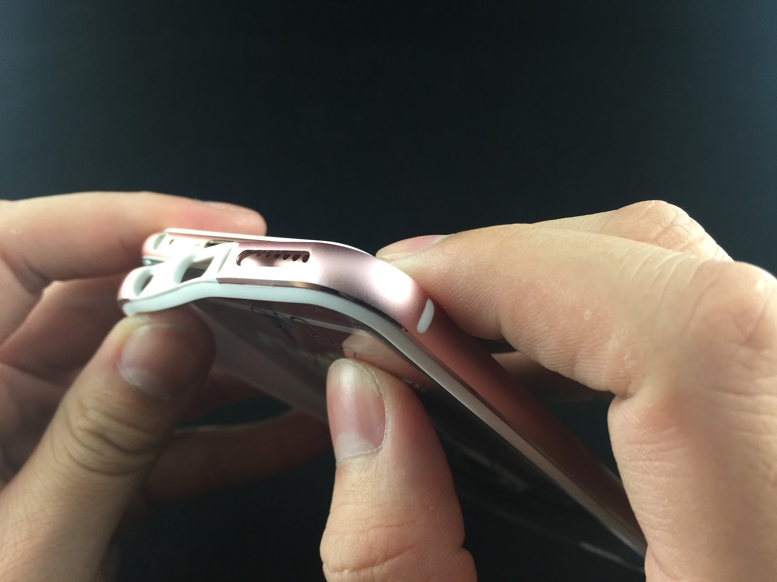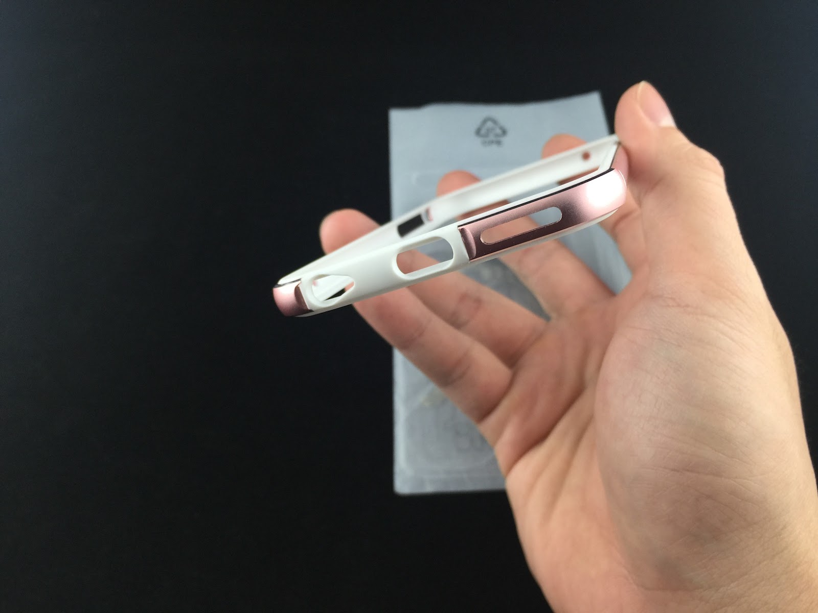 白色矽膠跟白色面板融為一體,搭配上玫瑰金的邊框,感覺起來就像是拿裸機一樣,非常好看。