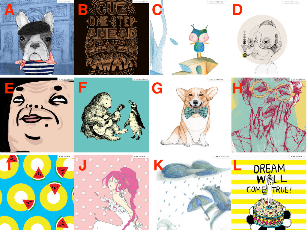 請 10 秒內從下圖選出你最喜歡的圖片,以第一眼印象為主: