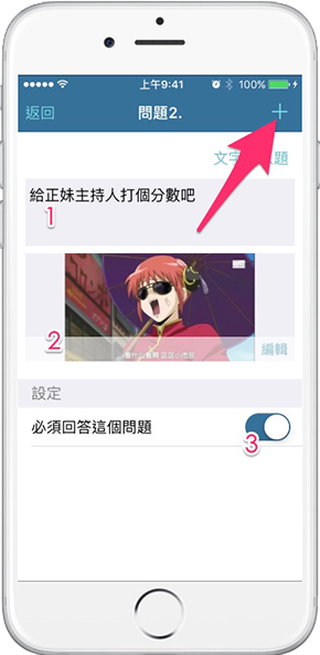 都完成之後,按下右上方的 + 就可以進入下一題的設計。