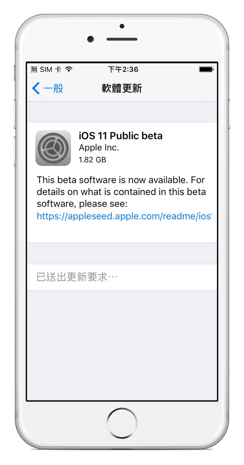重新啟動裝置後,進入「設定」>「一般」>「軟體更新」後,即出現 iOS 11 Public Beta 的更新選項囉!