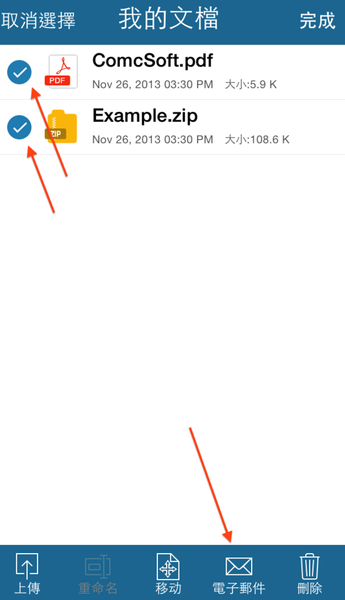 把想要的檔案圈一圈,接著按下信封✉️的圖案,