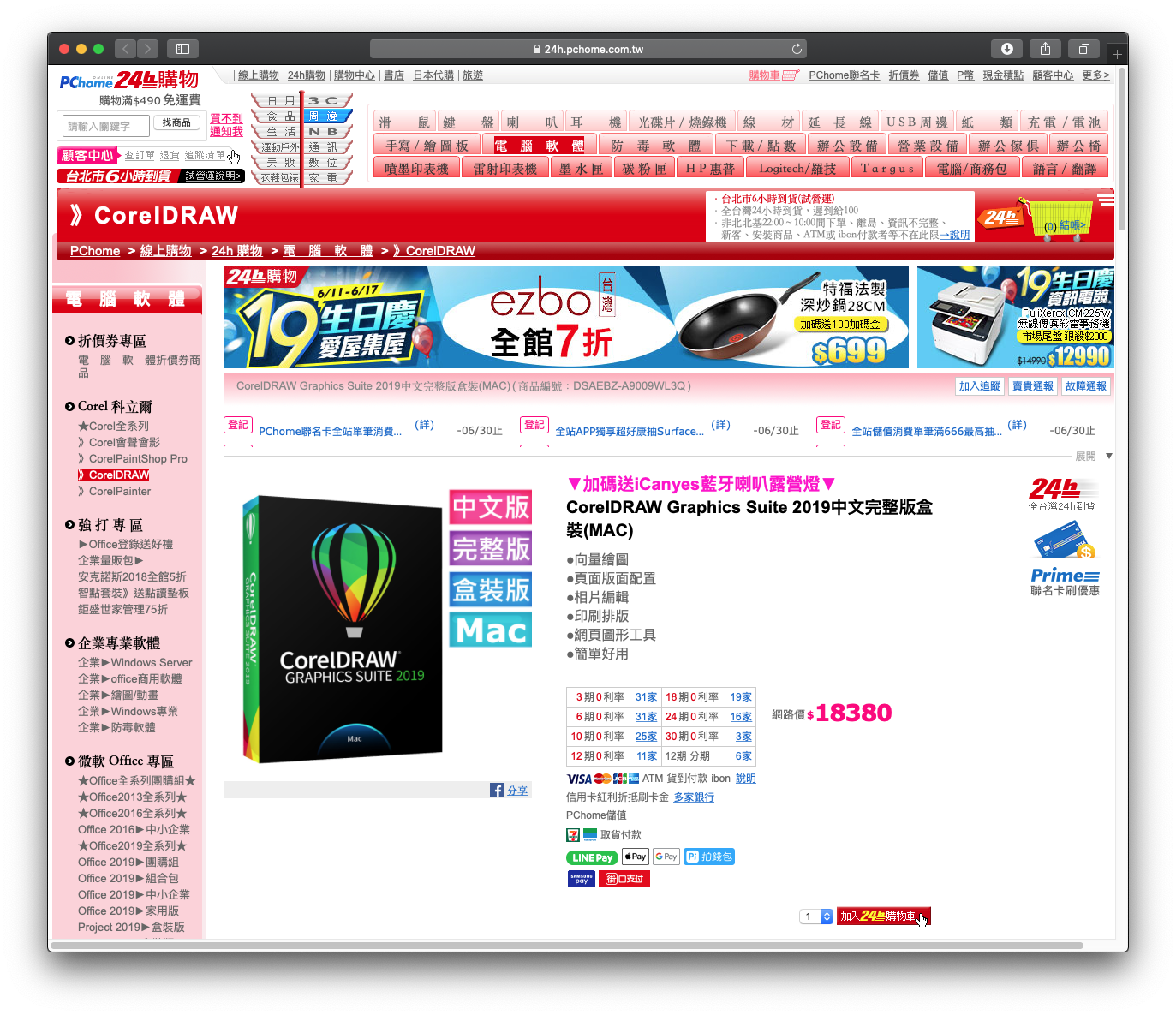 但如果真的要買永久授權的 CorelDRAW,比起直接在 CorelDRAW 官網上買,在 PChome 商店街 或是 Yahoo 商城硬是要更便宜一些,而且還常常做特價活動,但要特別注意版本,記得選擇 Mac 的版本就是了。