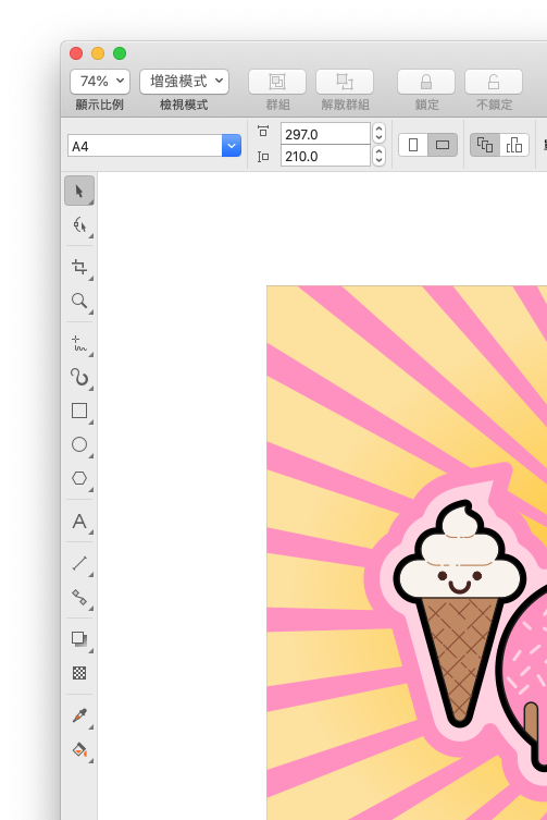 不過左邊的工具列是鎖死的,Windows® 版可以選擇全部開出來,對於螢幕大而且熟悉 CorelDRAW 的人來說是方便的,也許是 Mac 版考量到多數人都是用 MacBook,所以限制住了吧!